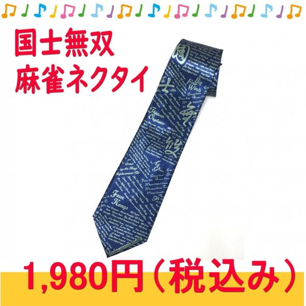 一見すると、斜めストライプにちょっと感じが入った外国人向けのネクタイのようですが、文字をちゃんと読むと国士無双になっている!というわかると嬉しいアイテムです。