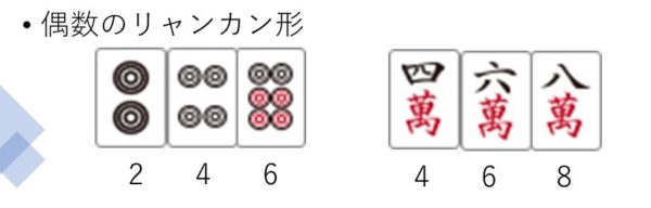 麻雀における様々なリャンカン形(偶数と奇数の違い)